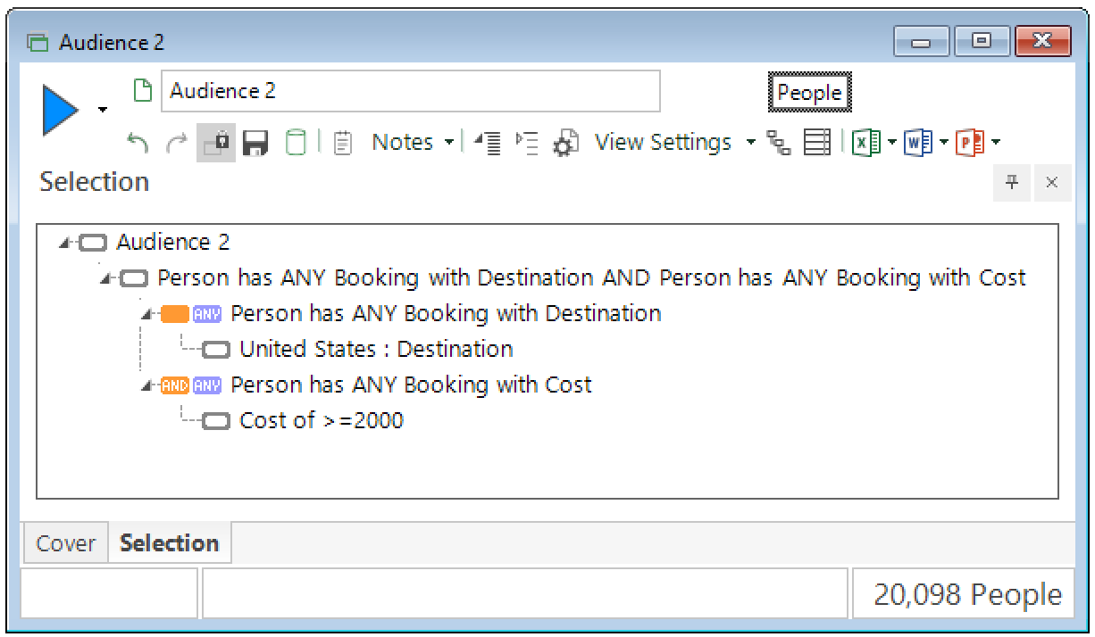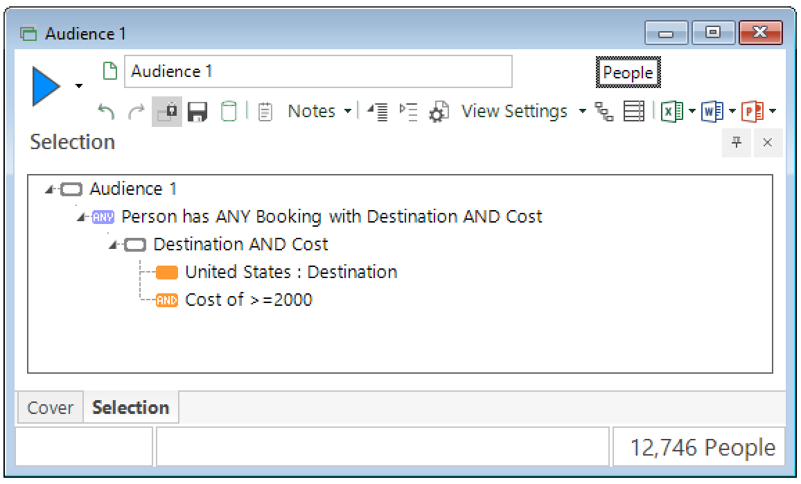audience_1 selects people who have any Booking to the USA costing at least £2000